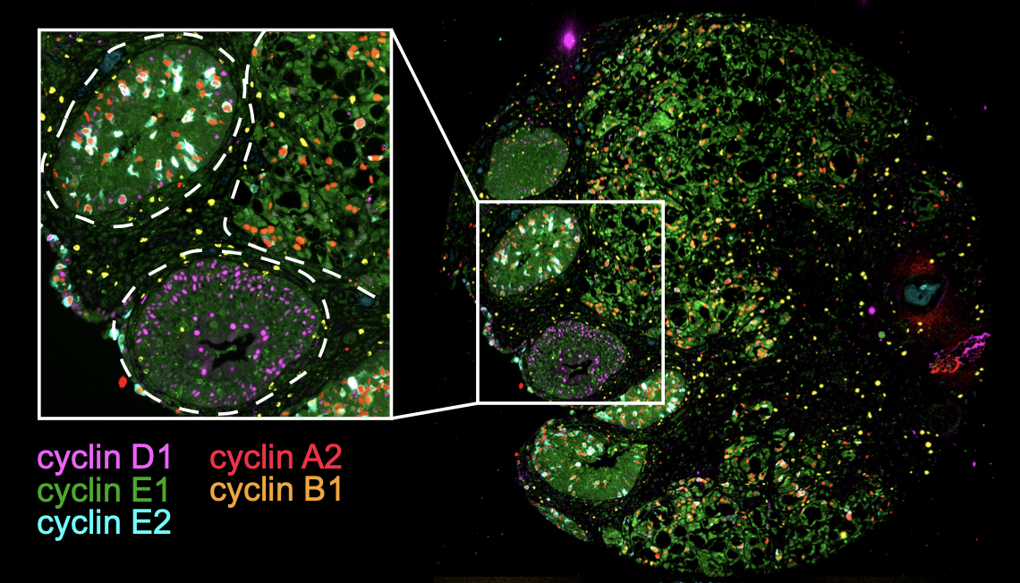 With the advent of technologies that allow us to measure cell cycle progression at the single-cell level, we now know that cells do not always traverse the same mechanistic paths en route to cell division. To explore this plasticity in cell cycle regulation, we are mapping the cell cycles of various cell types embedded in their native, 3-dimensional tissue environment to better understand the extent and functional role of diverse proliferative programs in human physiology and disease.