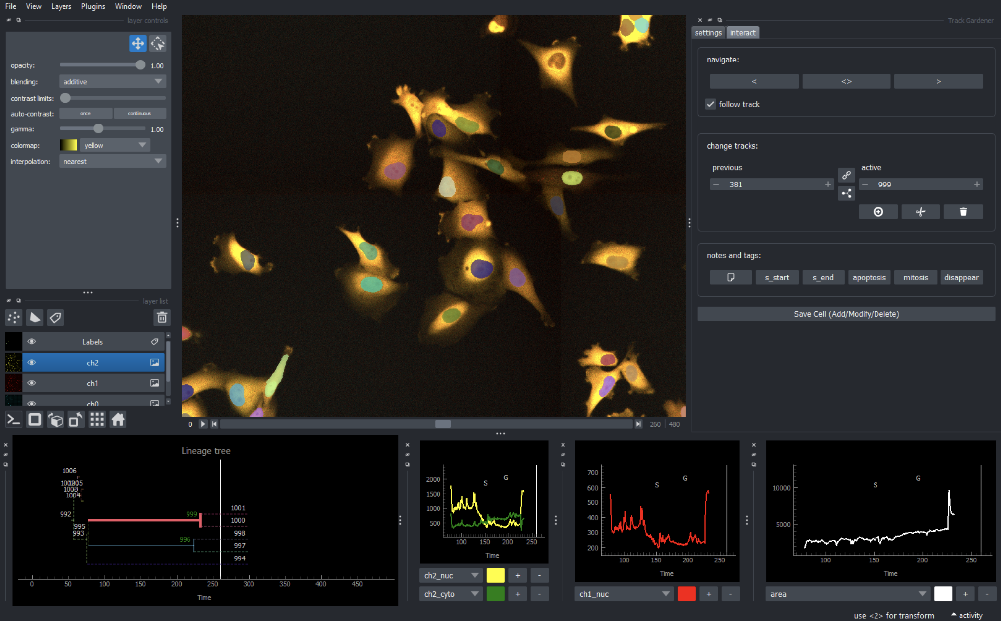 Using fluorescent biosensors of signaling and cell cycle effector activity we track individual cells as they progress through the cell cycle